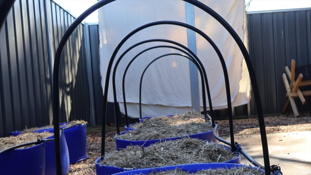 I’ve been getting the winter setup ready, and this time the focus was on adding a bit of protection over the drums I planted out last weekend.