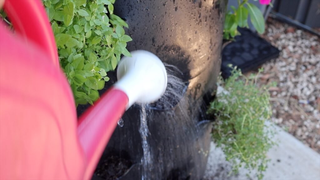 To get the tower ready, I topped up the pockets where the strawberries had been growing and added some fresh soil.