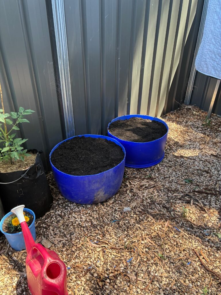 I aimed for roughly 25% compost in the mix. I used potting mix, added chicken manure, then topped it off with more potting mix and mixed it all through by hand so it wasn’t sitting in one concentrated layer.
