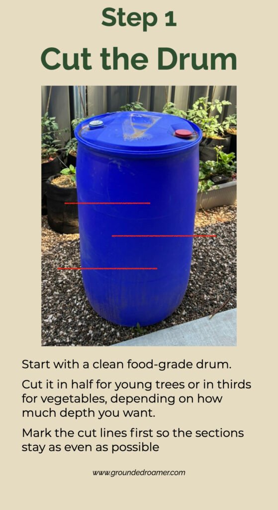 Drum Containers A simple guide for turning food-grade drums into practical containers for young trees or vegetables.Click on Image and save to your computer or phone