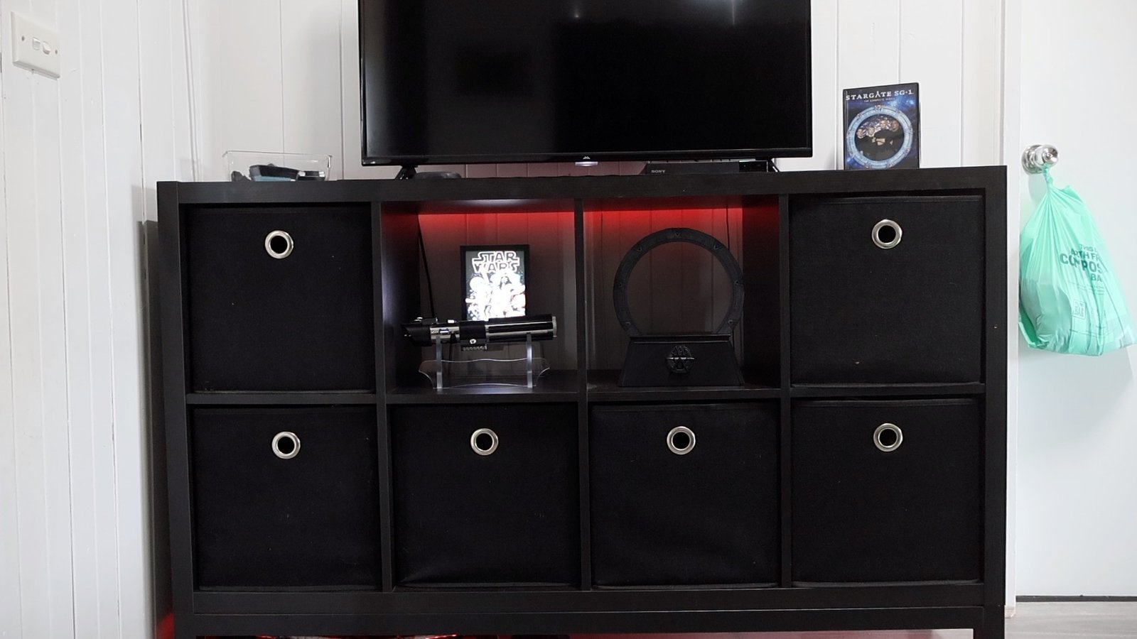 Once the clothes moved, it freed up two cubes in my TV cabinet.