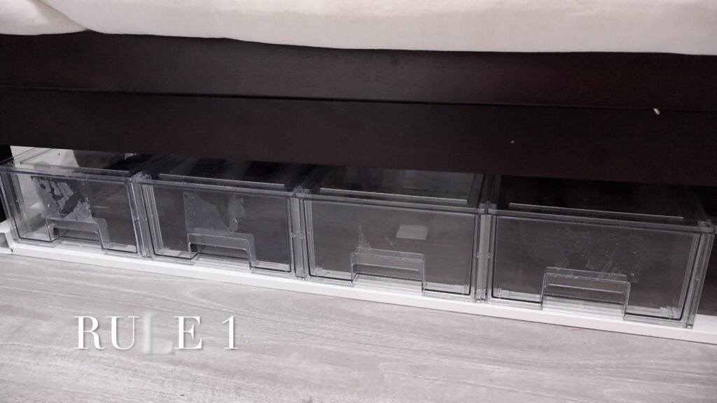 That was what started everything. The space under there was doing nothing, and it made more sense to use it for clothes. Now they’re stored right where I get changed, and they’re tucked away instead of ending up over the chair or on the floor.