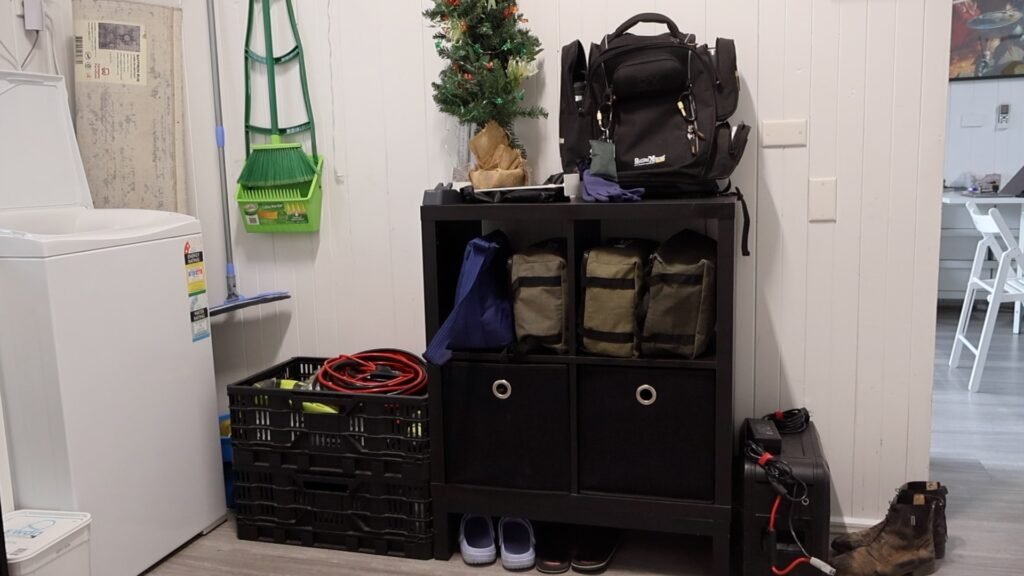 The home brew gear and bottles got a dedicated place. The bulk cooking gear moved into kitchen cupboards that already had room. The random tools and loose items that usually ended up in corners or spread across shelves went into stackable crates instead.