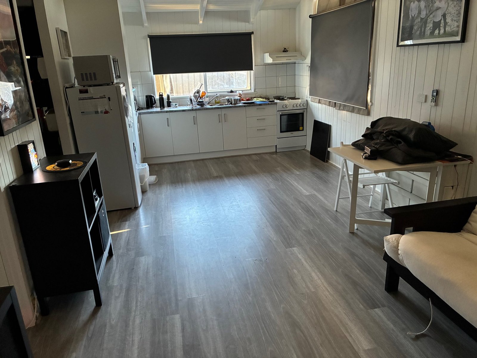 The folding table is probably my favourite piece in the whole place. It can stay out when I need it, then fold away quickly when I don’t. When the kids are here, we use it for games, Lego, and whatever else we’re doing. When I’m on my own, I can move it into the kitchen for meal prep or use it for extra bench space.